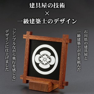 日本の伝統工芸である組子細工と伝統文化である家紋が調和した、家族を象徴する置物です。