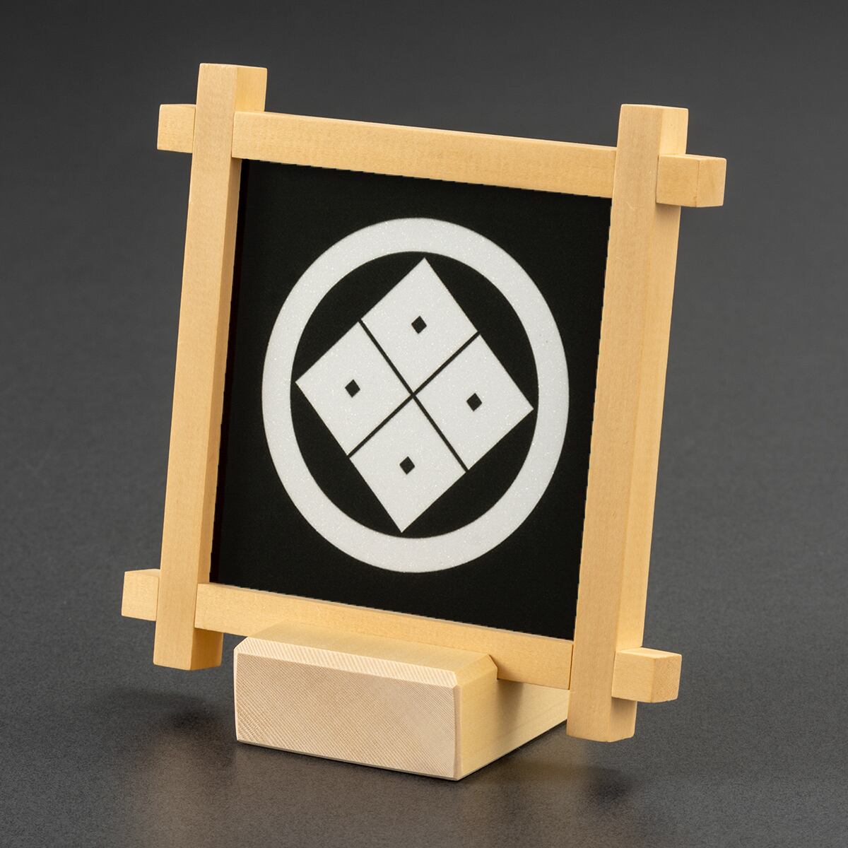 [丸に隅立て四つ目]組子細工の家紋パネル