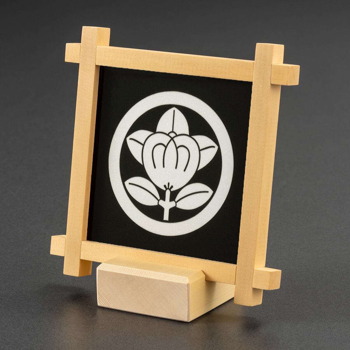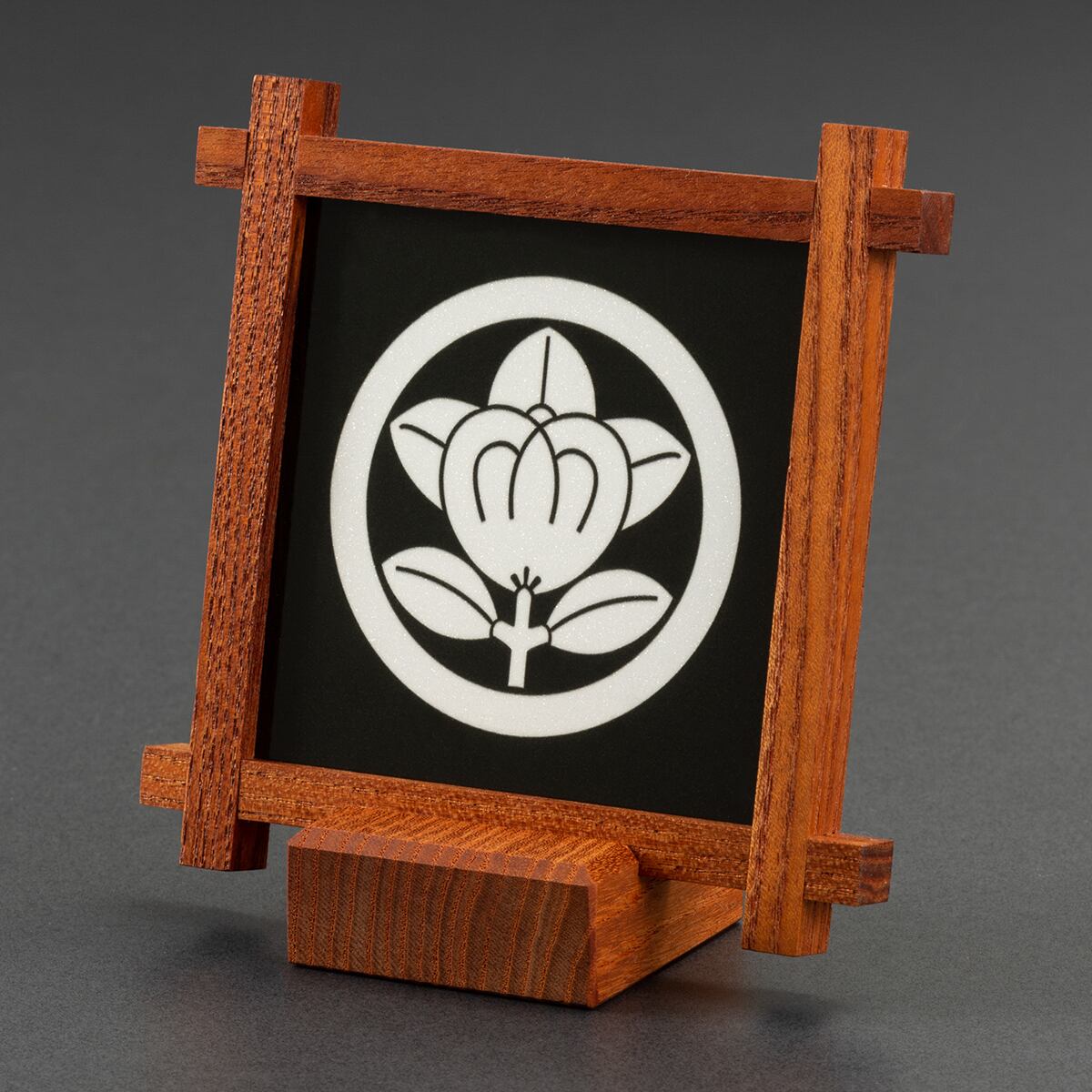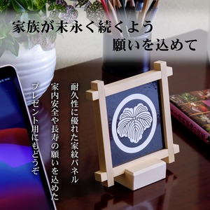 組子細工の伝統技法で演出された家紋パネルを、家内安全の縁起物として手元に置いてみませんか