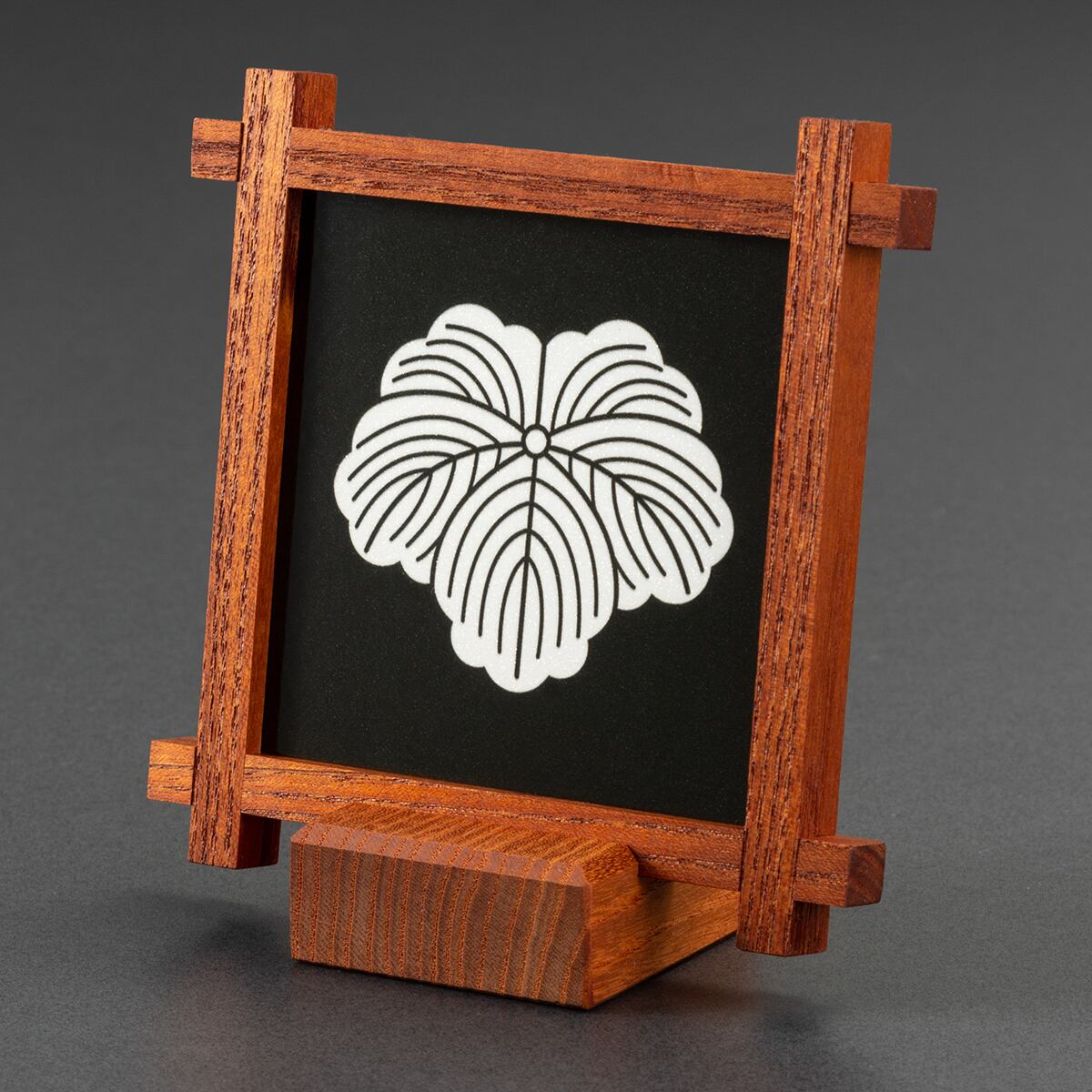 組子細工の伝統技法で演出された家紋パネルを、家内安全の縁起物として手元に置いてみませんか