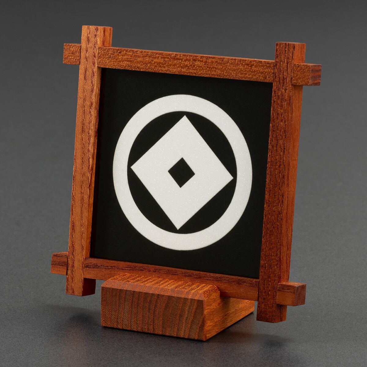 組子細工の伝統技法で演出された家紋パネルを、家内安全の縁起物として手元に置いてみませんか